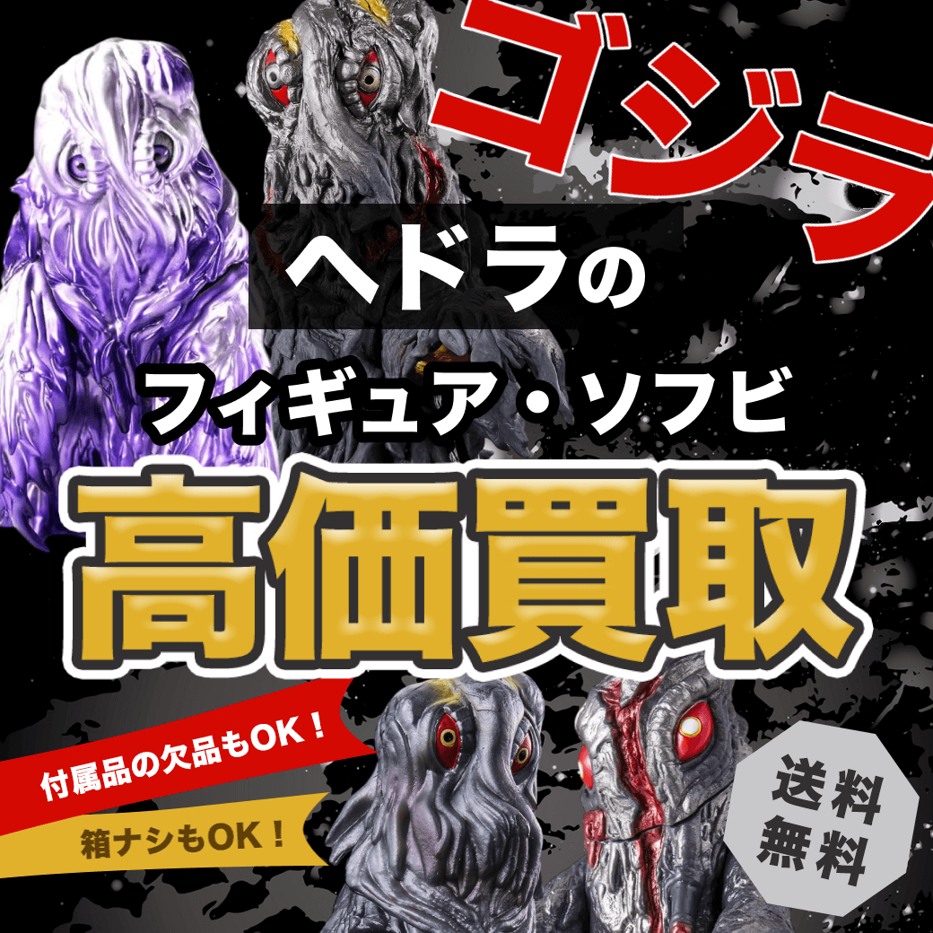 取扱商品であればまとめて買取が可能ですので、ゴジラのヘドラのフィギュア・ソフビとあわせてお送りください。