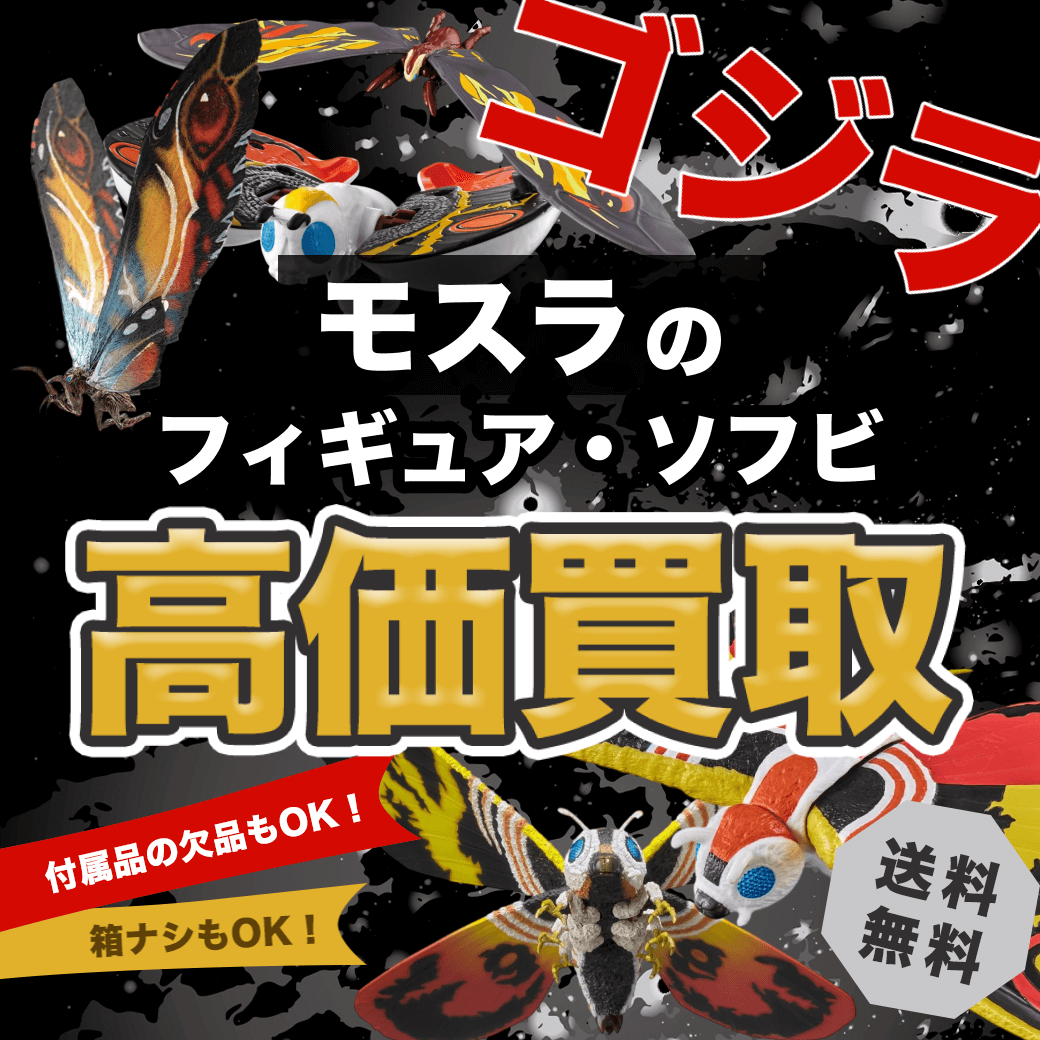 そんなモスラはフィギュアも大人気!さまざまなメーカーからモスラのフィギュアが発売されており、予約限定品や大スケールのソフビはプレミア値がつくこともしばしば。中古でも欲しいというファンは非常に多く、常に需要が高いため、高価買取が期待できますよ♪