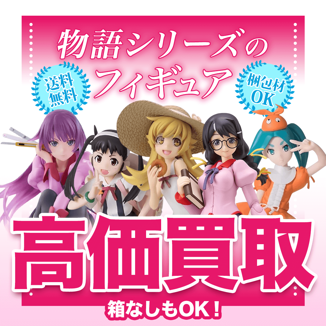 取扱商品であればまとめて買取が可能ですので、〈物語〉シリーズのフィギュアとあわせてお送りください。