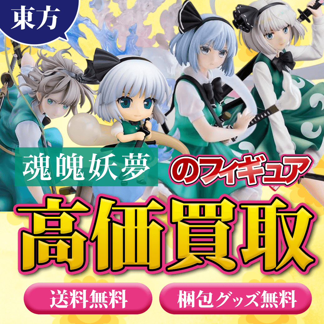 東方Projectでは100を超えるキャラクターが存在しており、魂魄妖夢以外にも、博麗霊夢、霧雨魔理沙など数多くのキャラクターが、フィギュアやグッズになっています。 作品ごとに集めていたり、推しのグッズをとにかく集めたというファンもいるでしょう。東方キャラクターをまとめて送ることで高額査定に繋がることもあります。買取に出す際は、まとめて送ると良いでしょう。