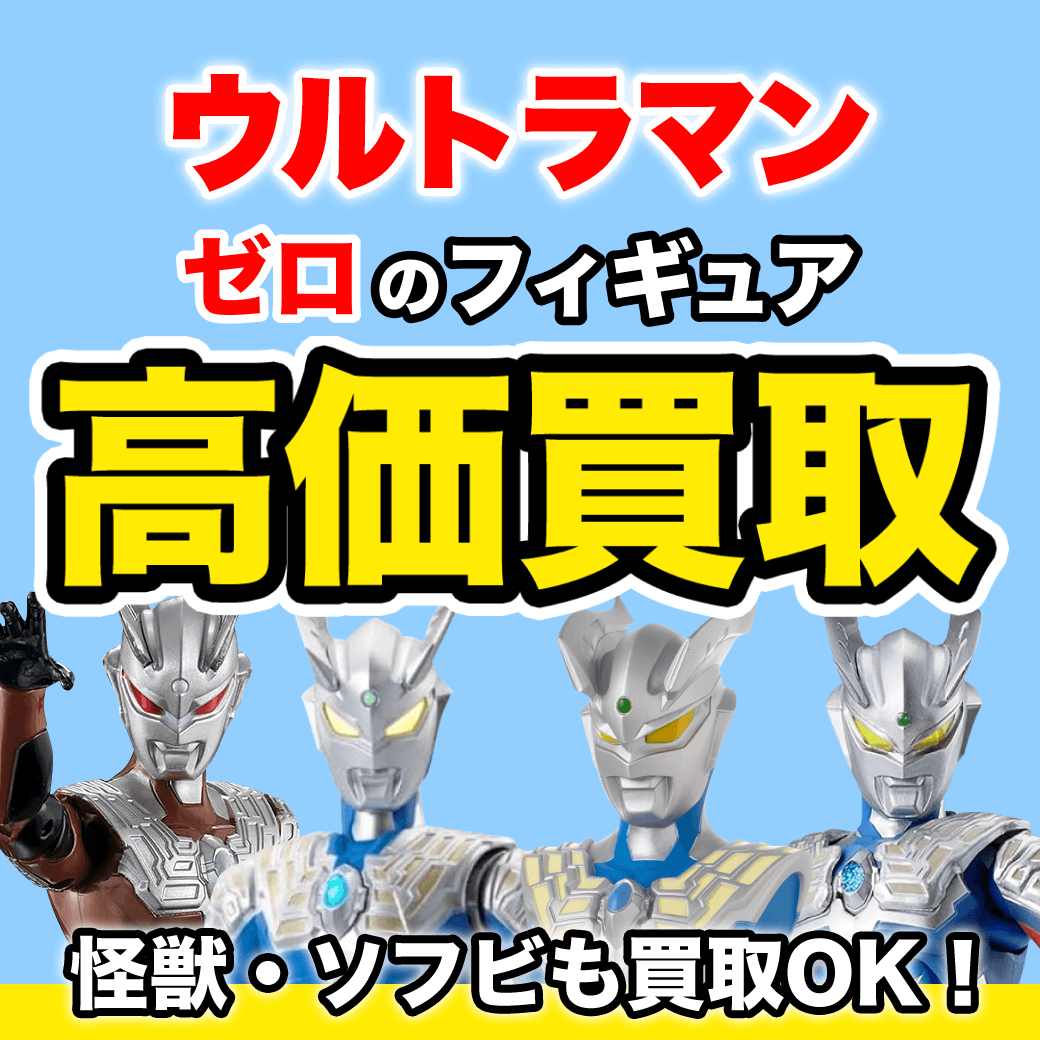 独立したTVシリーズはないものの、映画『大怪獣バトル ウルトラ銀河伝説 THE MOVIE』での初登場以降、大人気のウルトラヒーローです。 セブンや師匠であるウルトラマンレオとの関係性など、過去作との結びつきが強いところも人気のポイント!スタイリッシュで現代っぽさを感じるビジュアルデザインもかっこいいですよね。 そんなウルトラマンゼロはフィギュアやソフビも大人気!最新のアクションフィギュアシリーズやクオリティの高いソフビは中古でも需要が高く、高価買取が期待できますよ♪