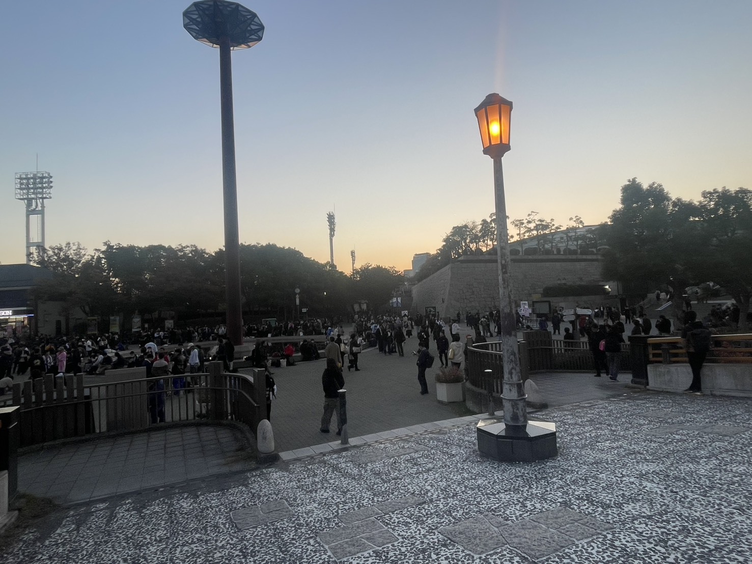 この日は平日開催だったということもあり、昼間の時点では人の姿はまばらだったものの、開演時間が近付くにつれて徐々に会場前の噴水広場が活気付いてきます。